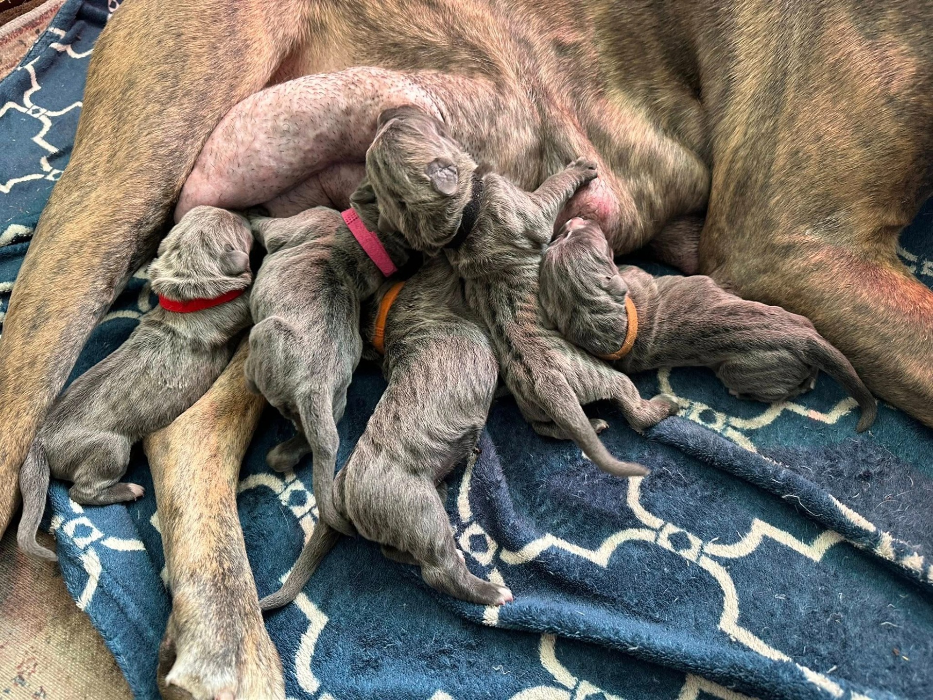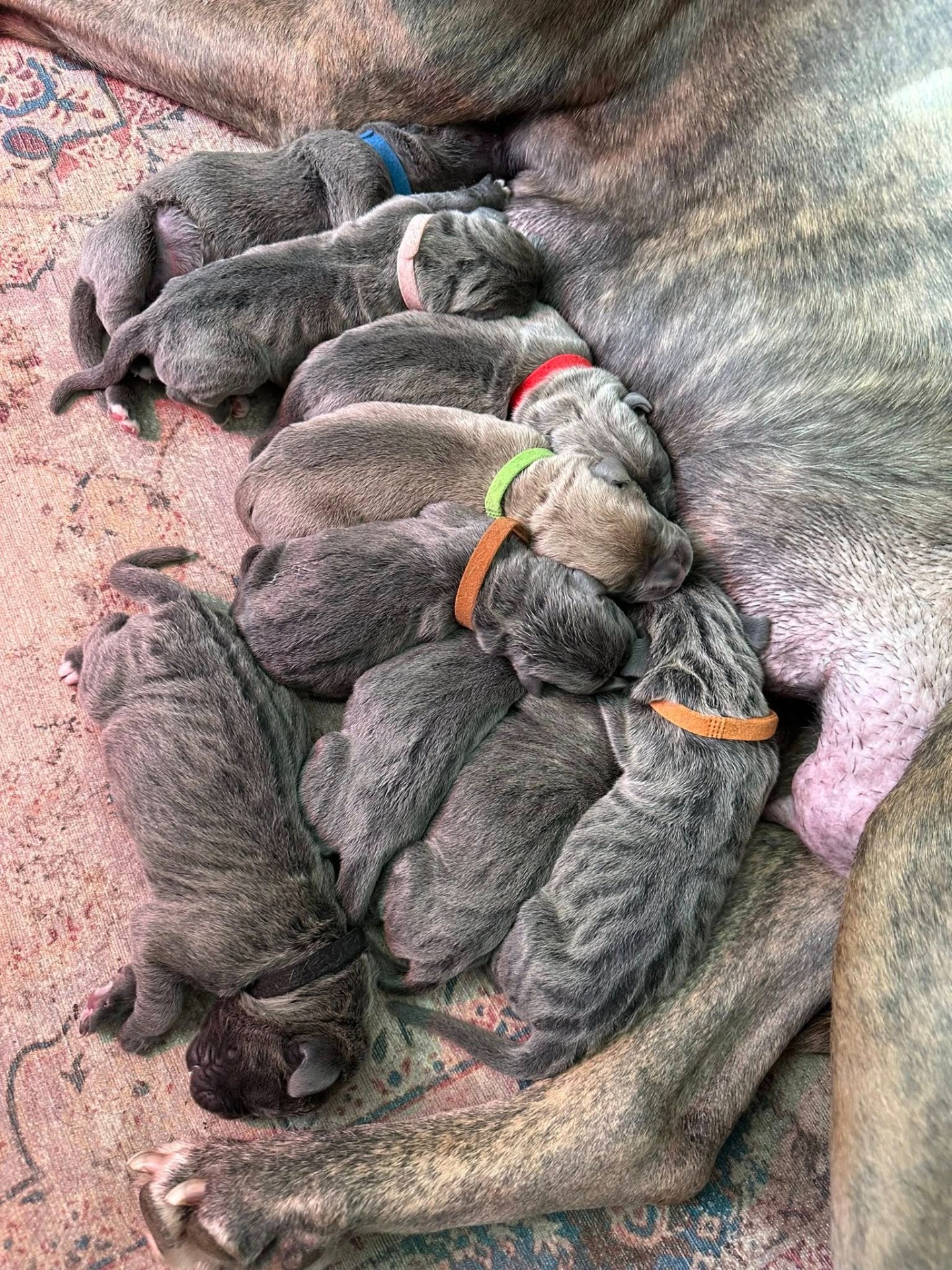 Toch heb ik afgelopen zomer na het fokken van 2 geplande nesten en 1 'oeps' nest weer mogen ervaren hoe fijn en leuk fokken kan zijn. Vanaf het begin af aan leuk contact met de fokkers van de dekreuen, Priscilla was heel meedenkend en meewerkend en ben heel blij dat ik voor reu Cane en Immortale ben gegaan. Zij hebben mij 3 prachtige en tot zover gezonde nesten gegeven en hoewel ik niemand 3 nesten tegelijk kan aanraden (;)) heb ik genoten van de 24 pups en hun 3 lieve zorgzame moederhonden.